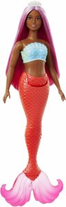 BARBIE syrenka červený ocas tmavě růžové vlasy HRR04