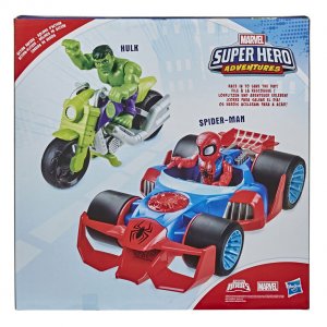 Zažijte akcemi nabitá závodní dobrodružství se svými oblíbenými superhrdiny Hulkem a Spider-Manem v této sadě hraček Playskool Heroes Marvel Super Hero Adventures!