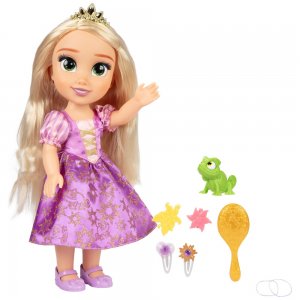 Tato zpívající panenka je založena na mladší verzi filmu Rapunzel. Malí fanoušci Disney ji ale okamžitě poznají podle růžových šatů a dlouhých zlatých vlasů. Na hraní, česání a styling přináší Rapunzel zlatý kartáč, princeznovskou čelenku, dvě spony do vlasů a čtyři jehlice v různých provedeních. A kde by byly Disney princezny bez zvláštního pouta se zvířaty? Součástí panenky Rapunzel je tedy i figurka jejího chameleona Pascala. S ním může znovu prožít scény z filmu, když si s ní hrají děti - nebo samozřejmě úplně nové příběhy. Nálada filmu se objeví pokaždé, když princezně zmáčkne prso. Poté zpívá píseň z filmu Rapunzel.