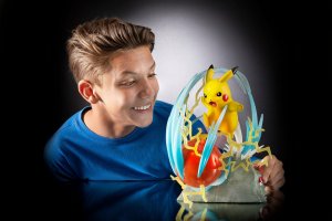 Tato nádherná soška Pokémona Pikachu, nejznámějšího Pokémona na světě, byla vydána speciálně při příležitosti 25. výročí Pokémonů. Po stisknutí tlačítka se Pikachův Electro Ball útok rozsvítí a vytváří efekt pulzujícího elektrického proudu.