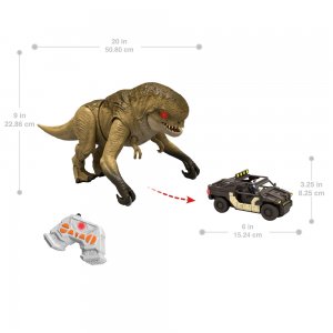 Používejte dálkové ovládání ke hraní třemi vzrušujícími způsoby: Ovládejte dinosaura přímo, nechte ho pronásledovat vozidlo nebo se ujměte kontroly nad vozidlem a unikněte nebezpečnému dinosaurovi!