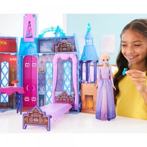 Oživte kouzlo Disneyho filmu Ledové království II s tímto nádherným domečkem ve tvaru hradu Arendelle od společnosti Mattel. Domeček, který dosahuje výšky přes 60 cm, je inspirován tímto ikonickým animovaným filmem a nabízí nekonečné hodiny zábavy pro děti. Součástí sady je módní panenka Elsa a celkem 15 kusů nábytku a doplňků.