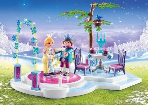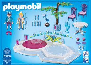 Playmobil 70008 Princeznin bál, Superset Princ a princezna na královském plese. Po slavnostní večeři si spolu zatančí na venkovním tanečním parketu. Otočný mechanismus středu tanečního parketu. Věk: 4+ .