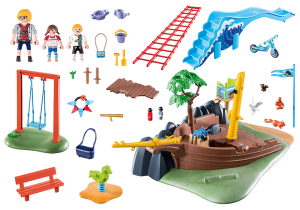 Co je lepšího než se dostatečně zabavit na dětském hřišti? Velký vrak lodi zve děti ke hraní, lezení a zkoumání. Kdo si vezme na starost kormidlo a kdo by rád pozoroval okolí dalekohledem? Pro nejmenší je k dispozici houpačka nebo skluzavka. Zatímco děti dovádí na hřišti, tatínek odpočívá na lavičce. Po chvíli ho však děti zapojí do hraní. Podaří se jim společně najít skrytý podklad? balení obsahuje: 1x figurku tatínka, 2x figurku dětí, vrak lodi, houpačku, skluzavku a další doplňky