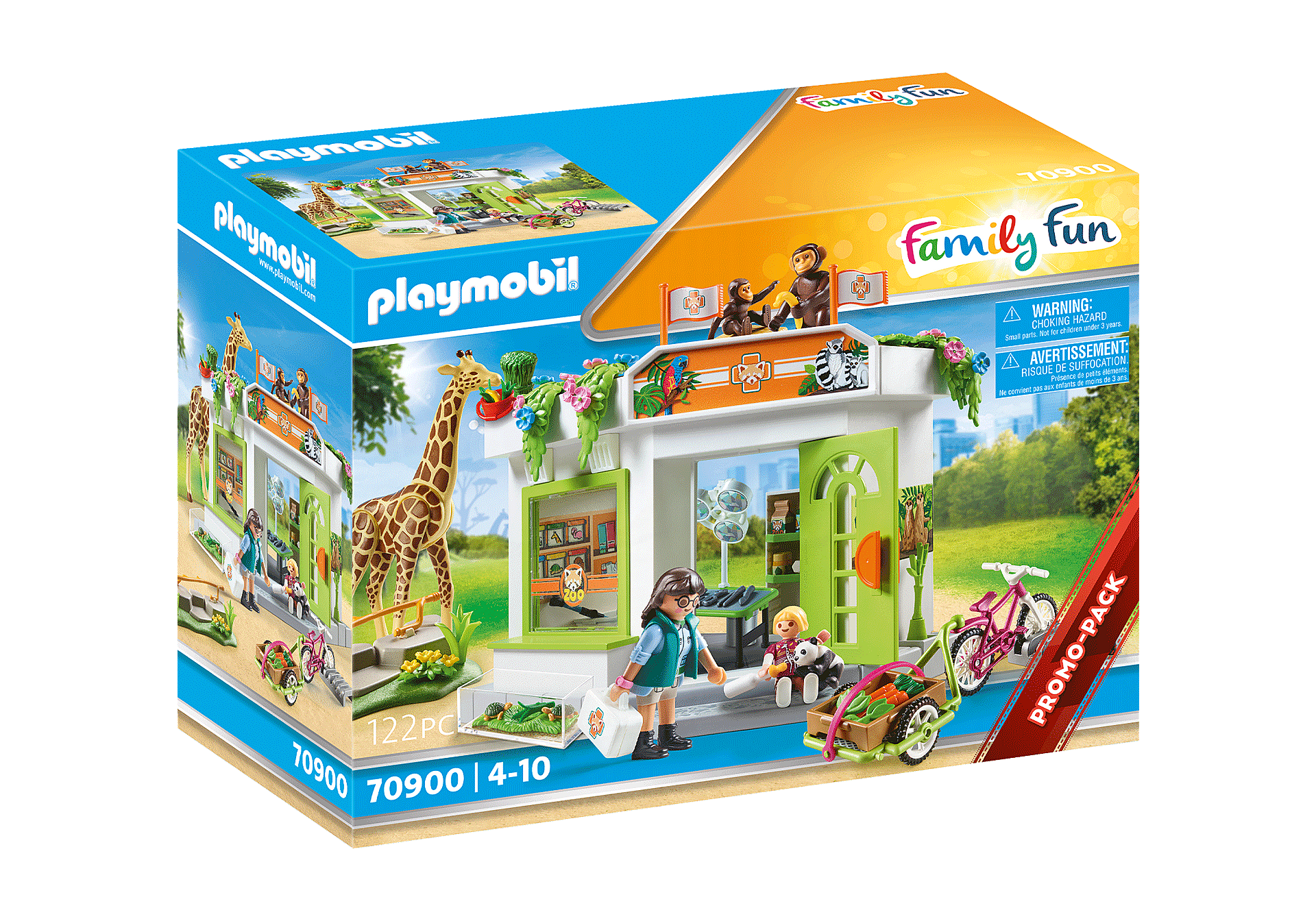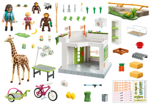 Ať už je to šimpanz, žirafa nebo mládě pandy, každé zvíře v zoo je ve veterinární ordinaci rychle ošetřeno. Nejprve jsou pacienti vyšetřeni na operačním stole, poté se provádí operace nebo se ošetřují rány. Krmivo pro zvířata je skladováno na střeše ordinace. Když zrovna veterinář neordinuje, jezdí na kole s vozíčkem po ZOO a rozváží jídlo a léky. balení obsahuje: 2x figurku, ZOO, zvířata a další doplňky