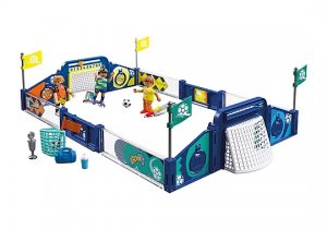 Příslušenství: 1 fotbalová aréna se dvěma brankami a zábradlím, 2 fotbalové míče, 4 stožáry na vlajky, 2 základní desky, 1 fotbalová helma, 1 fotbalový kostým, 1 žlutočervená karta, 1 píšťalka, 1 vlajka, 1 trofej, 1 síťový koš, 1 sportovní taška, 1 láhev na vodu, 1 aršík samolepek, 4 akční karty