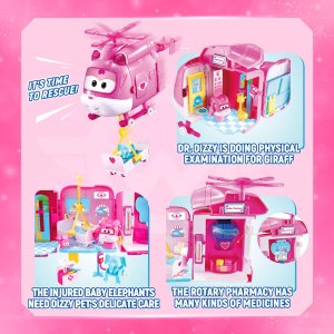 Zahrajte si vzrušující příběhy se záchranářským vrtulníkem Dizzy s touto sadou Super Wings! Součástí je figurka růžové hrdinky Super Wings Dizzy a rozkládací vrtulník. K dispozici je čekárna, inspekční prostor a ošetřovna. K dispozici je také spousta příslušenství pro delší zábavu!